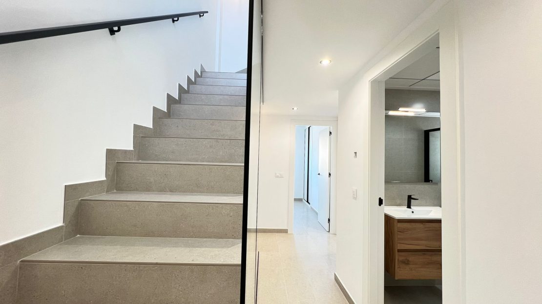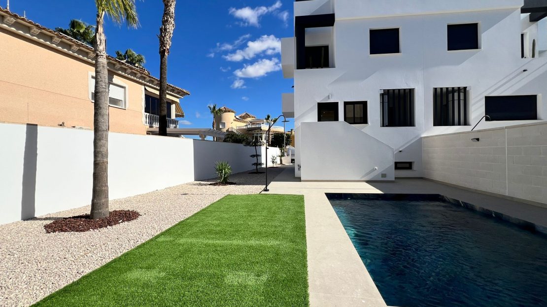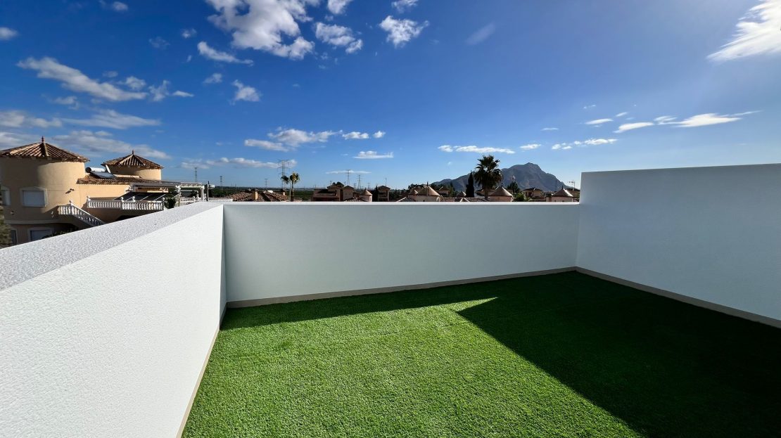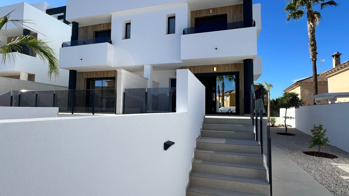 Here you will find excellent new construction semi-detached villas. Homes built on large areas, each one features a 222m² built area and gardens of up to 372m², plus they include terraces and a solarium. We have detailed floor plans available for the semi-basement with car entrance, ground floor, first floor, and turret, with information on exact areas, rooms, and terraces so you can thoroughly understand the design and functionality of each space. With the possibility of building a swimming pool. Each property has 3 bedrooms and 2 luxury design bathrooms. The construction work is in a very advanced state.