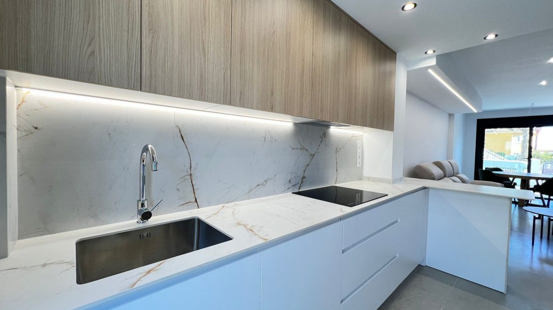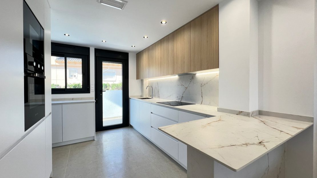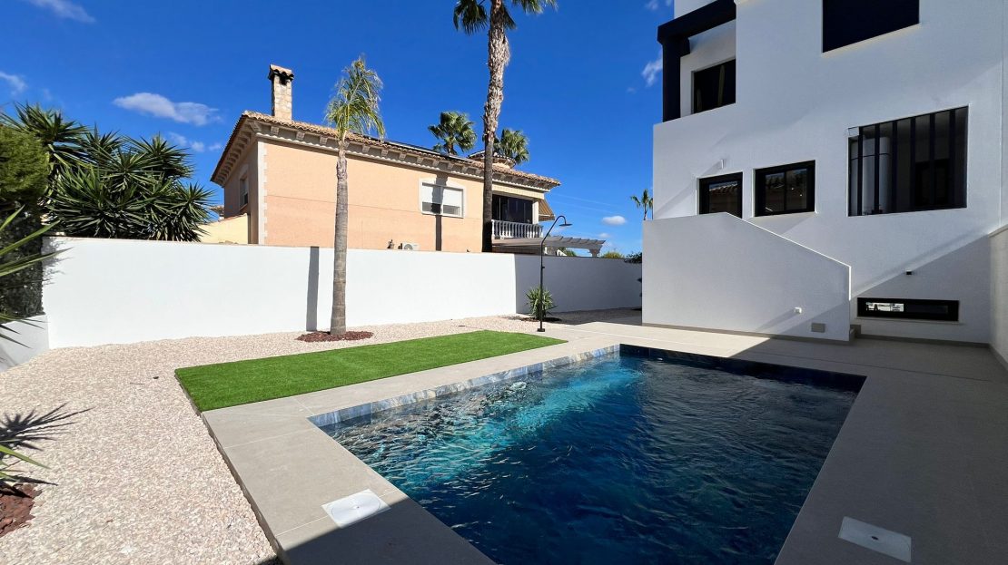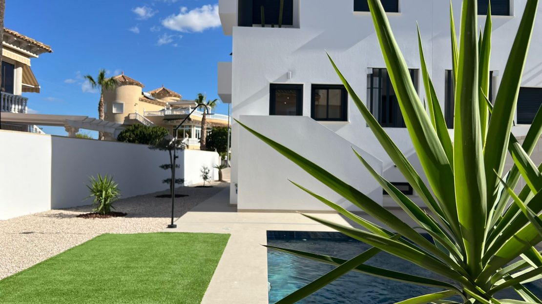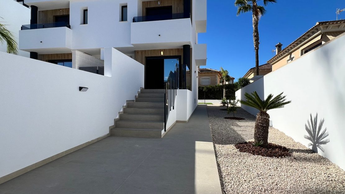 Here you will find excellent new construction semi-detached villas. Homes built on large areas, each one features a 222m² built area and gardens of up to 372m², plus they include terraces and a solarium. We have detailed floor plans available for the semi-basement with car entrance, ground floor, first floor, and turret, with information on exact areas, rooms, and terraces so you can thoroughly understand the design and functionality of each space. With the possibility of building a swimming pool. Each property has 3 bedrooms and 2 luxury design bathrooms. The construction work is in a very advanced state.