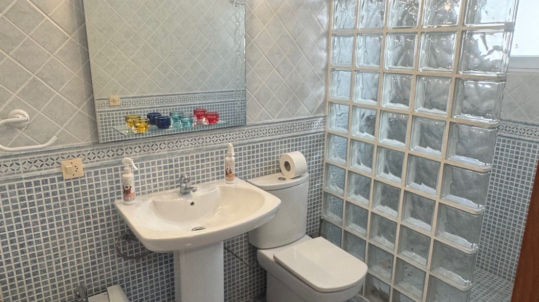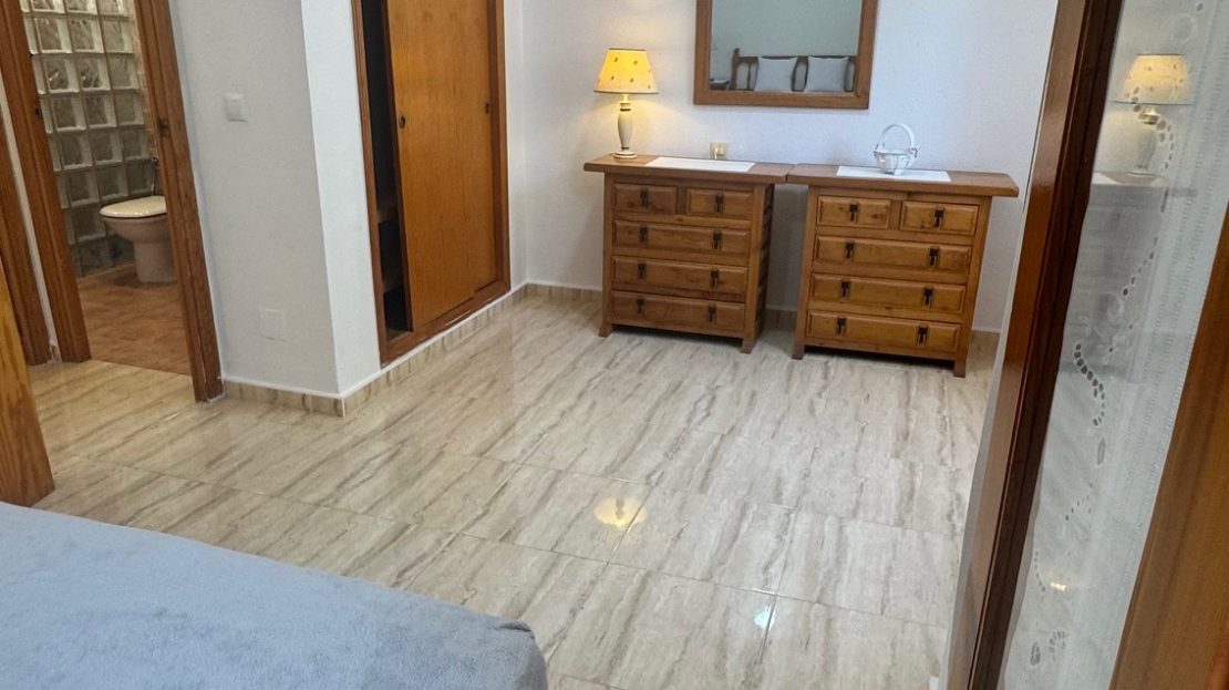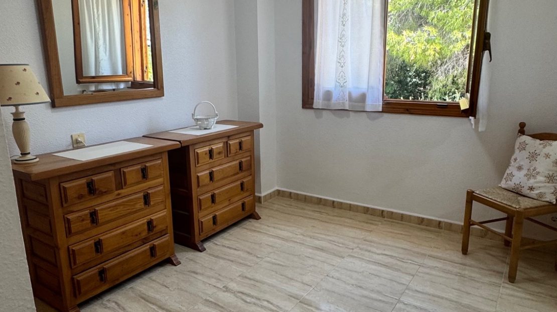 163 m2 built, 134 m2 living space, 5 bedrooms, 4 bathrooms. Two storage rooms, laundry area, plus an additional storage room. Two terraces, 40m2 plot, sea views and within walking distance to Cala Mosca beach, Playa Flamenca, and a dog-friendly beach. Very quiet area for year-round living and ideal for summer holidays. South Facing. Built in 1985. Renovated. Includes two parking spaces. The house is cool in summer and warm in winter. Close to all types of services, bars, and restaurants.