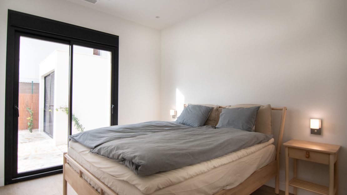 Villas con piscina privada situados en Los Montesinos. Las villas de 158m² con estilo moderno sobre parcela desde 356m² constan de 3 dormitorios y 3 baños. El dormitorio principal tiene baño en suite.