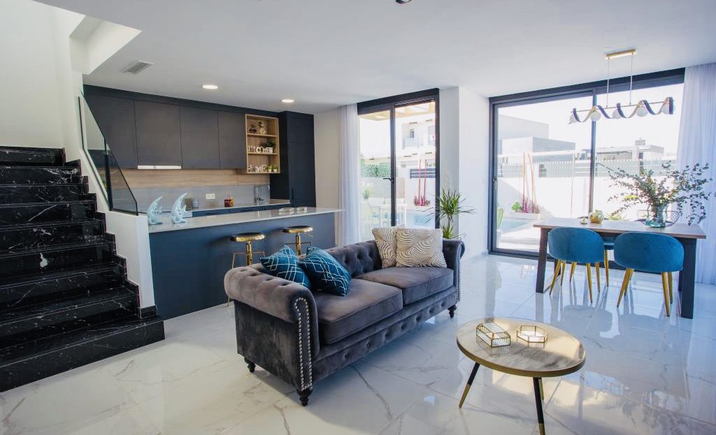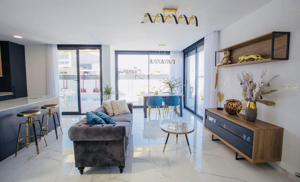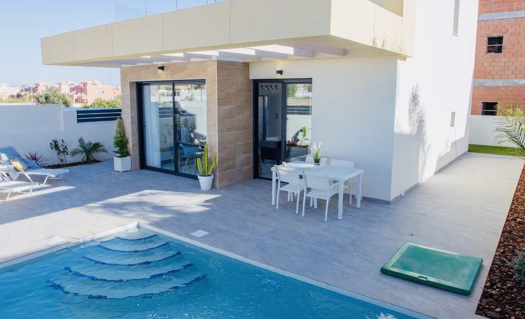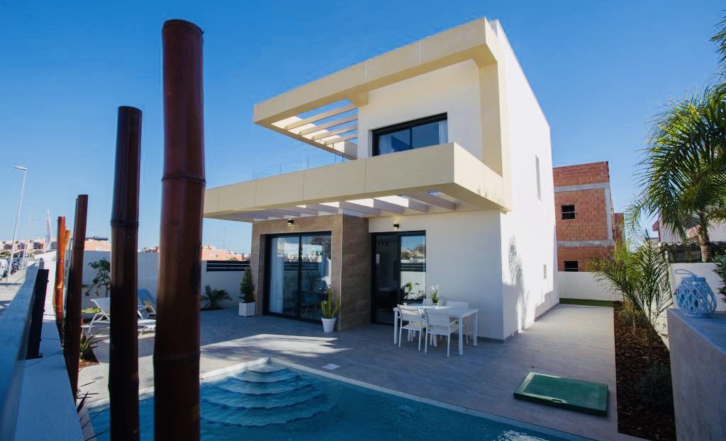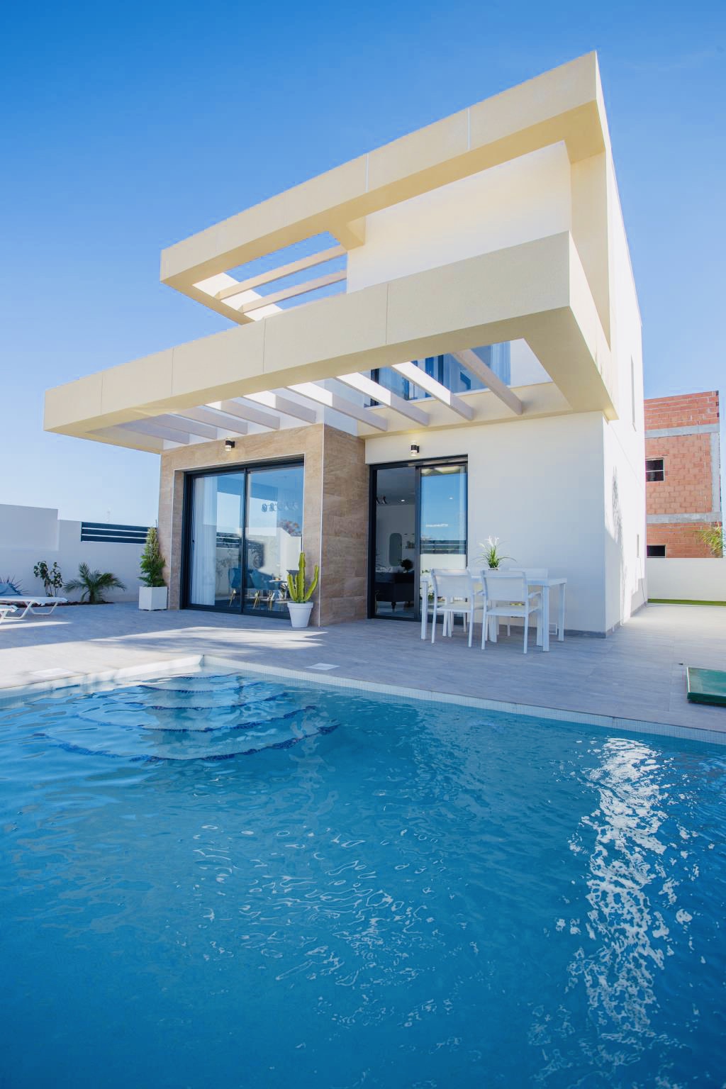 Parcelas desde 300 m2 y casas desde 108m2 distribuidos en dos plantas con amplio salón, 3 habitaciones, 2 baños y 1 aseo. Cada villa tiene su piscina privada y solárium.