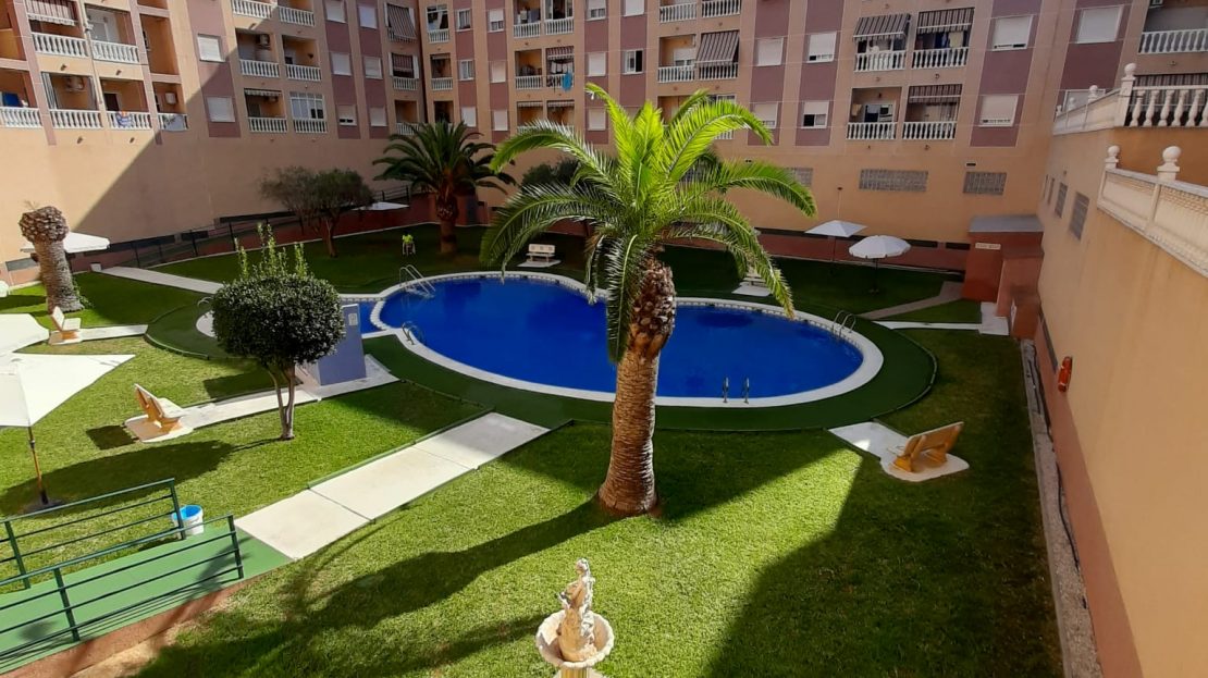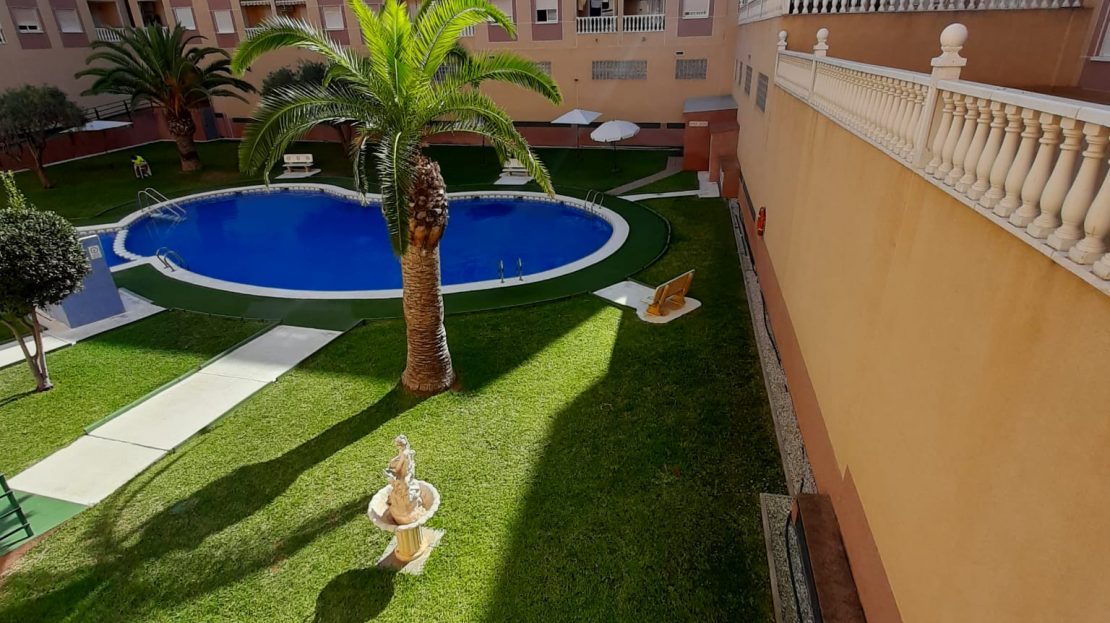 El edificio cuenta con acceso a piscina comunitaria y zonas verdes. Su ubicación es clave: muy cerca del Parque de las Naciones y a solo 500 metros de la playa del Acequión.