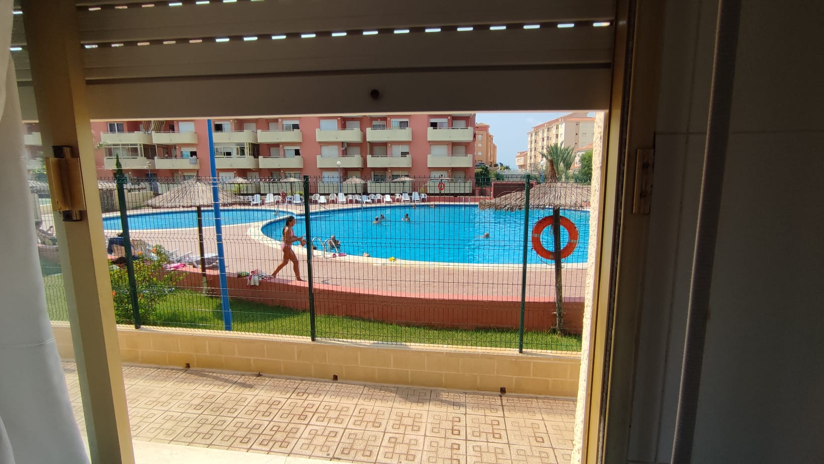 Apartamento de dos dormitorios en planta baja situado en Los Pinos, La Manga. Esta atractiva propiedad cuenta con un cómodo acceso a una piscina comunitaria bien mantenida y se complementa con una plaza de aparcamiento privada en el garaje subterráneo.