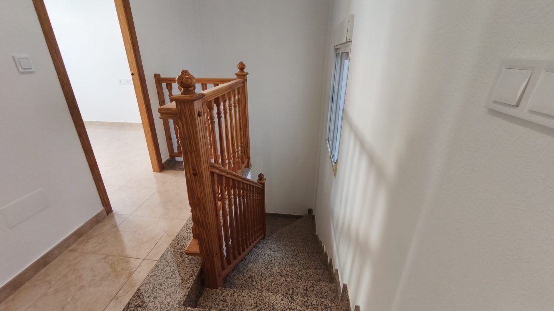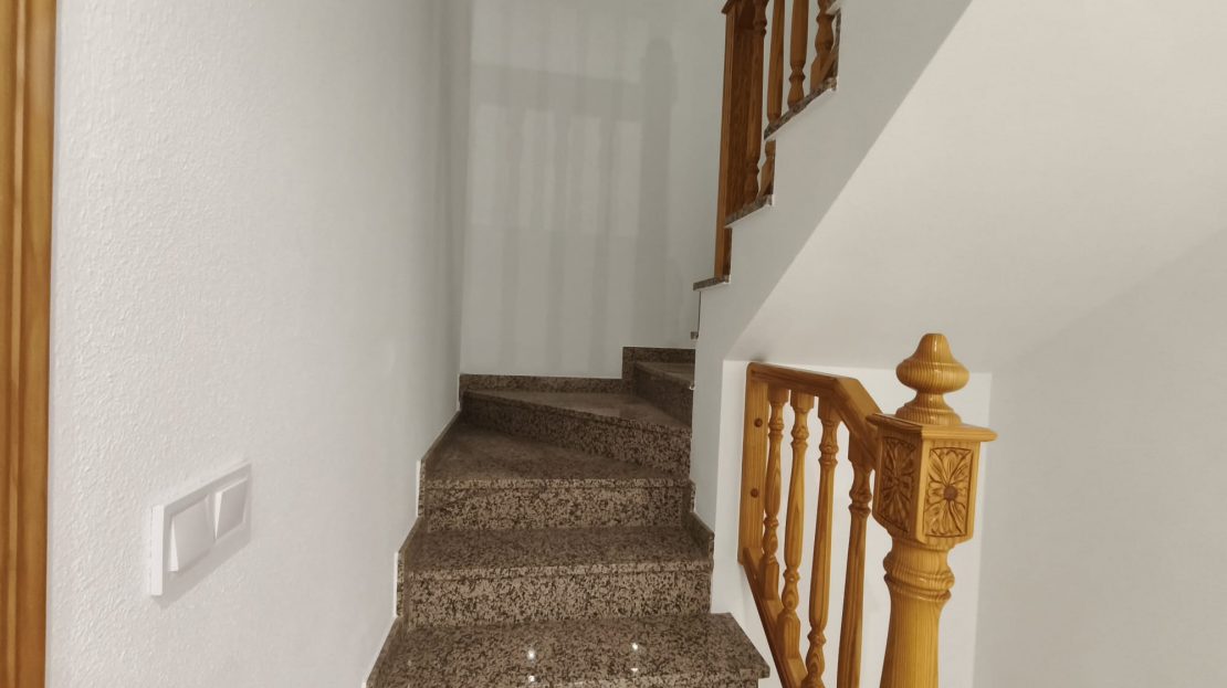 Precioso bungalow en tres alturas ubicado en Benejúzar. Bungalow en 3 niveles totalmente reformado, para entrar a vivir. La planta baja, para garaje exterior y trastero. Con un porche techado, garaje/trastero cerrado (pavimentado y alicatado) con zona de lavadero, chimenea/barbacoa y lavabo con ducha. Unida con la siguiente planta, por escalera interior. En la planta primera, a la que se accede tanto por escalera interior como exterior, cuenta con salón-comedor con acceso a una terraza a fachada, cocina con mobiliario nuevo a estrenar (muebles altos y bajos, encimera de mármol negro y campana extractora de acero inoxidable), amplia galería totalmente techada con acceso desde la cocina y desde planta baja (con lavadero y termo eléctrico) y un baño completo. En la planta segunda, a la que se accede por escalera interior, cuenta con cuatro dormitorios, dos de ellos con acceso a patio interior privativo de la vivienda y el principal, con armarios empotrados y dos accesos al balcón superior, y un baño completo. No tiene Comunidad de propietarios. Área residencial, zona muy tranquila, repleta de adosados y viviendas unifamiliares que cuenta con todos los servicios y muy buena conexión, tanto de transporte público como privado y fácil acceso a la carrera CV-920. 169,37 m2 construidos (vivienda 115 m2 más 37,50 m2 de garaje más 16,87 m2 de trastero). Catastralmente 215 m2. Vivienda de protección official, régimen general, promoción privada de fecha 21/12/2000, periodo de protección 30 años
