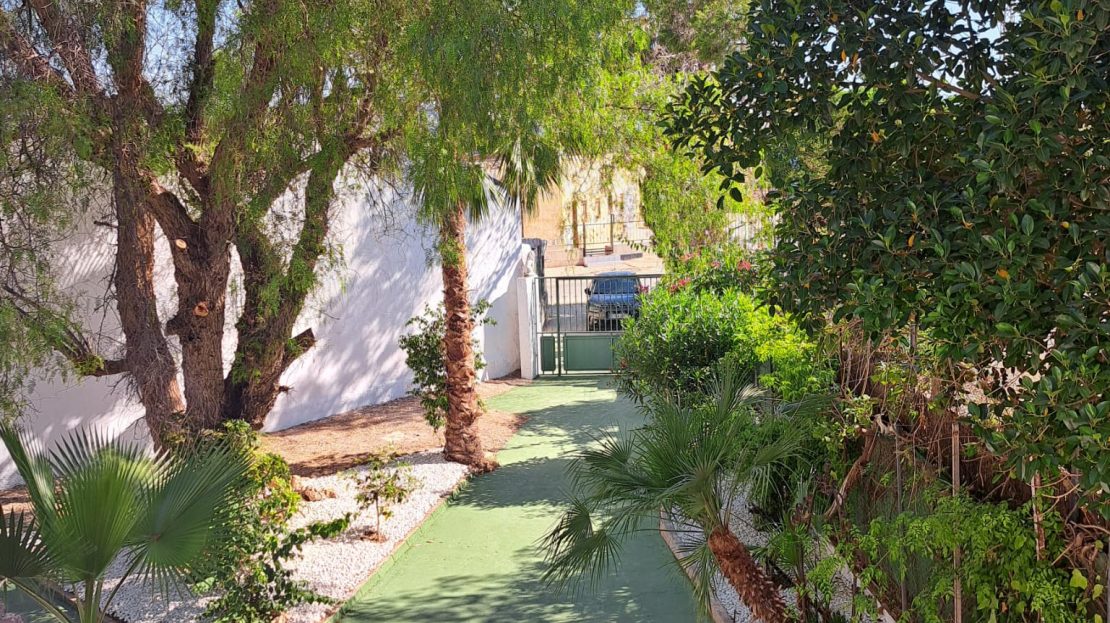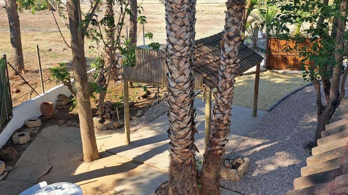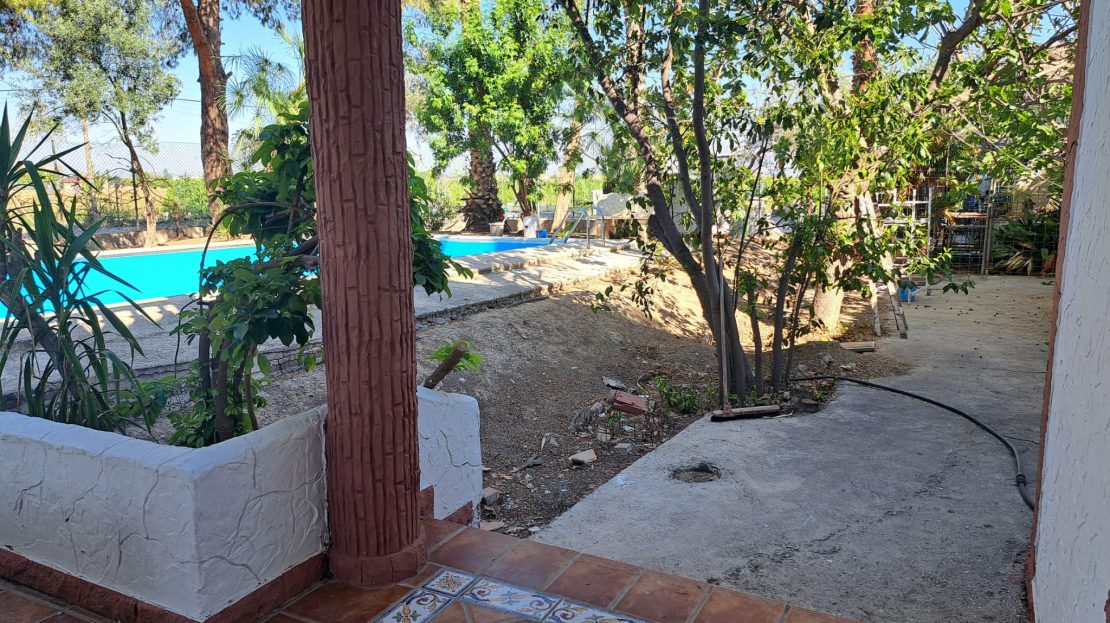 El jardín vallado está lleno de plantas bien cuidadas y grandes árboles, proporcionando muchas áreas sombreadas. La piscina es grande (13x5m). La parcela abarca casi 1,2 hectáreas y está completamente vallada. El jardín también está vallado y hay una puerta en el patio trasero que da acceso a la otra parte de la parcela y a una avenida de palmeras que lleva al camino. Frente a la casa hay otra entrada al jardín. La mayor parte de la parcela está vacía, ofreciendo potencial para diversos usos, como la cría de animales (por ejemplo, caballos), el cultivo o la creación de un olivar o huerto de cítricos.